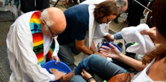 Un lavado de pies para los trabajadores de Télam que luchan...